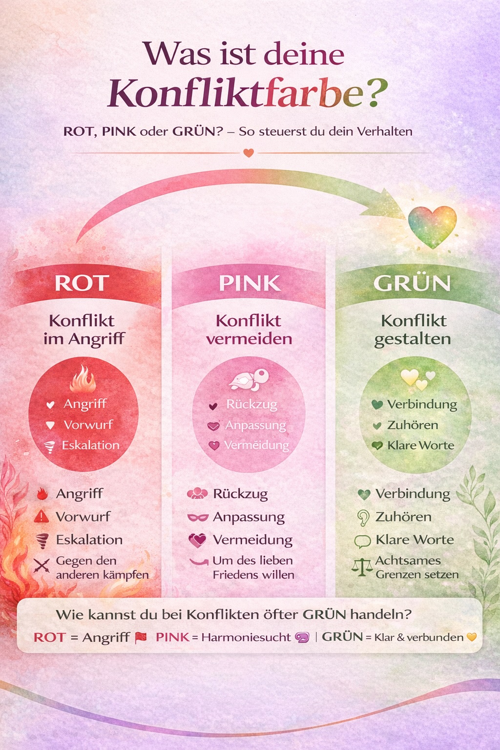 - 🩷 PINK: Rückzug, Anpassung, Konfliktvermeidung