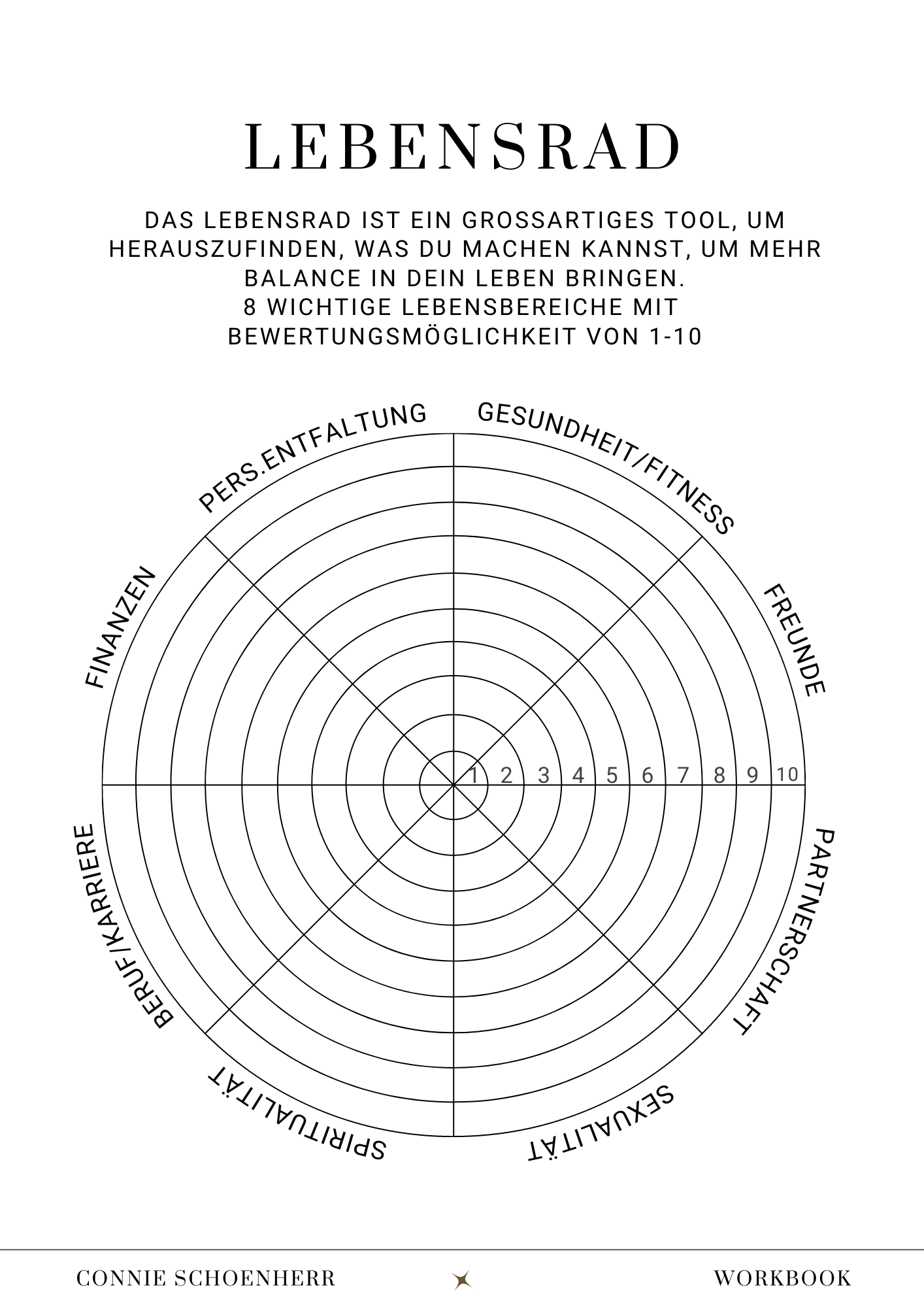 Fülle jetzt noch einmal dein Lebensrad aus.